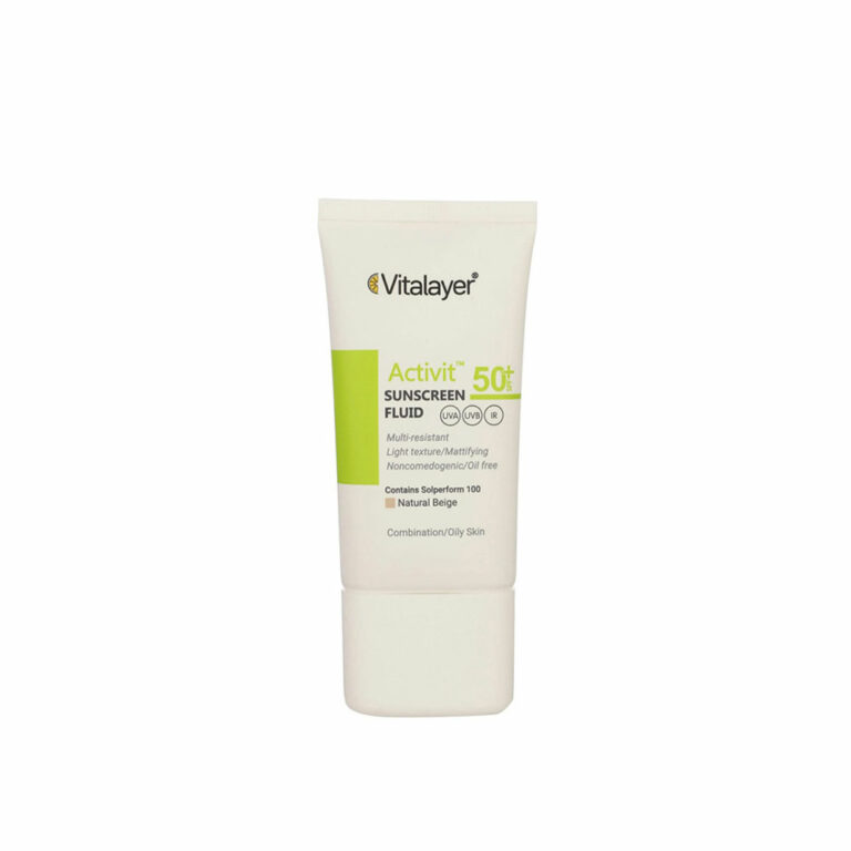 فلوئید ضد آفتاب بژ طبیعی اکتی ویت مناسب پوست چرب SPF50 ویتالیر vitalayer